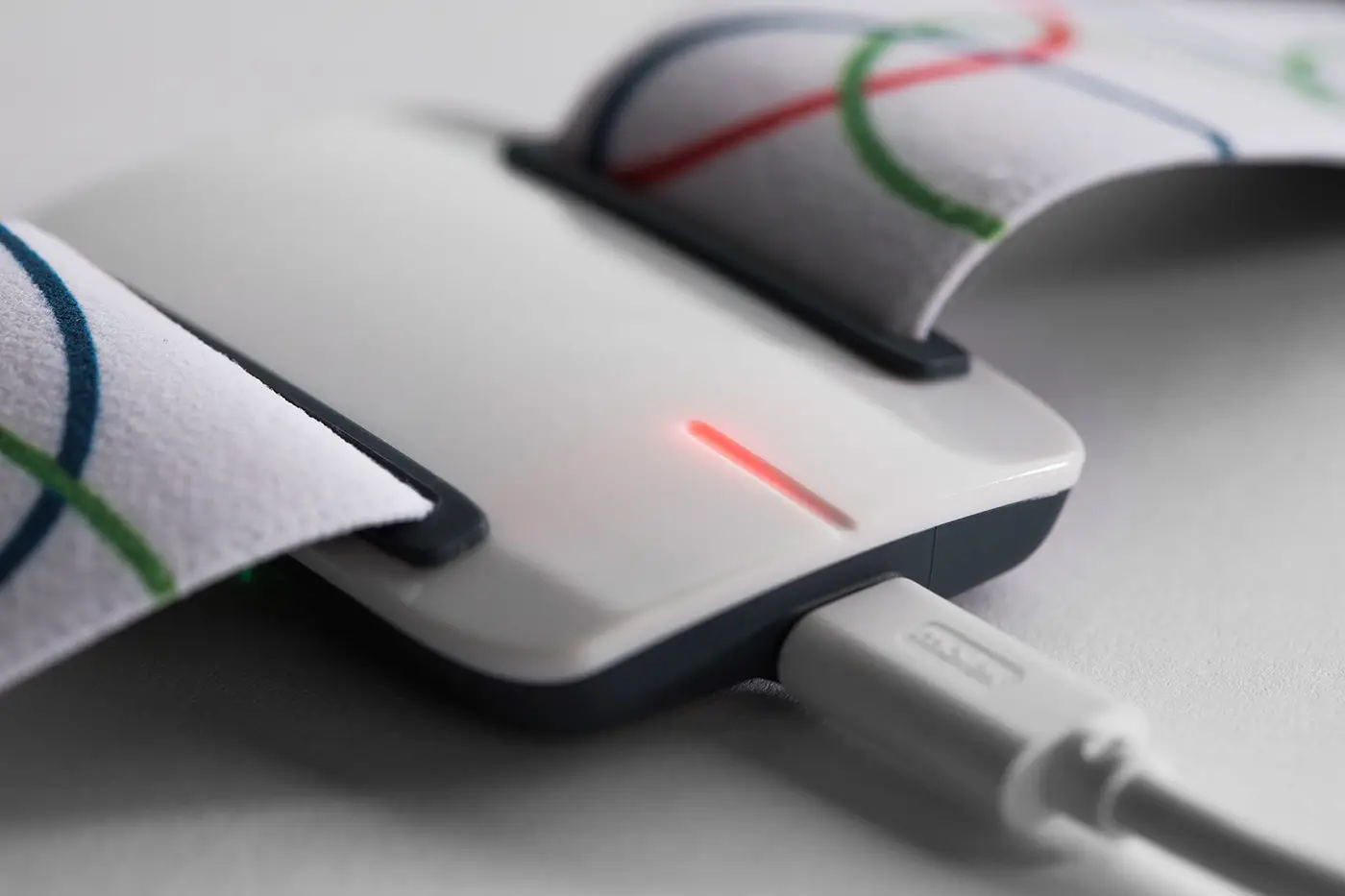 NightWatch detects clinically urgent epileptic attacks at night. In bed, the patient wears a band on their upper arm. Sensors measure the heart rhythm and movements. If a seizure occurs, the DECT base station warns the carers immediately. Livassured commissioned npk design to design the armband with sensors. Our design input resulted in a smart concealed band closure which makes the armband as comfortable as possible during sleep, but which enables optimal measurements. The next step was to create a series of prototypes with which tests were carried out on patients. The band is decorated with a nice graphic pattern.