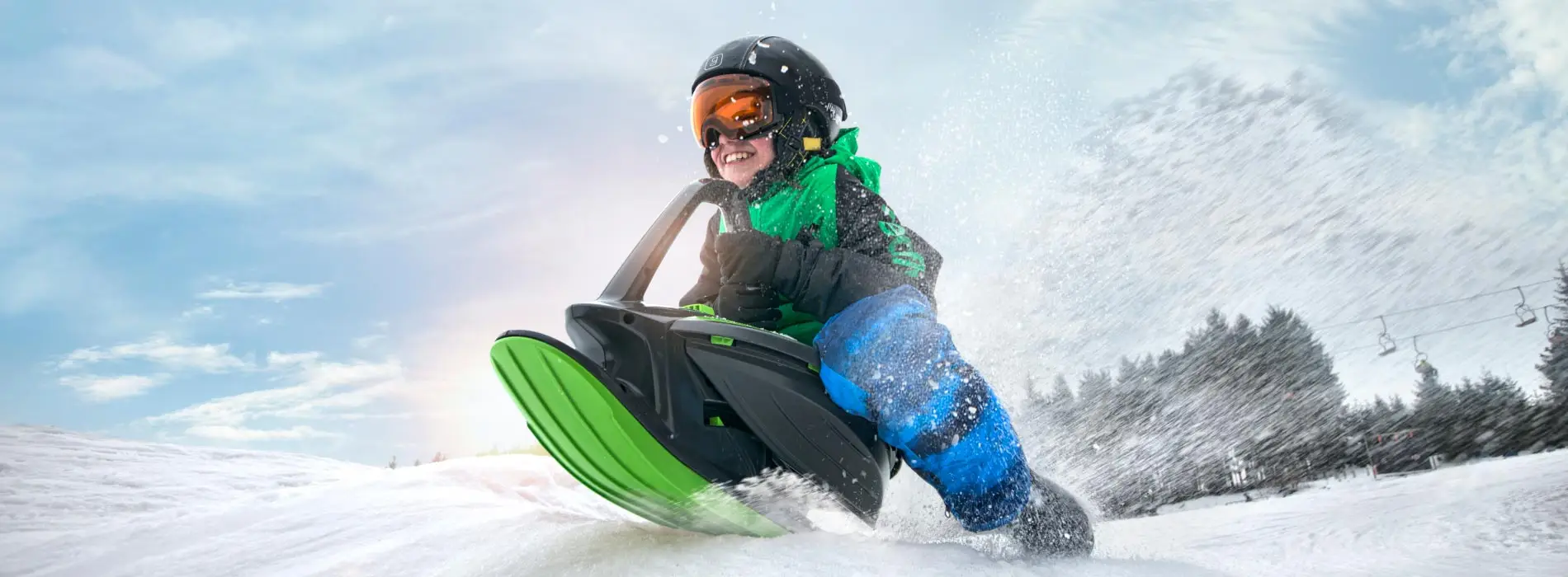 Voor extra controle en snelheid in de hoeken is het stuursysteem geoptimaliseerd. De hoeken van de binnen en buiten ski volgen de bocht uitermate nauwkeurig. De kabel van de slee rolt vanzelf op door een zeer doeltreffend en eenvoudig systeem dat eveneens functioneert als veer voor de rem.