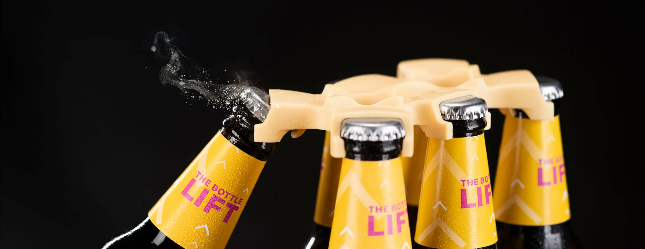 Het oorspronkelijke idee om overal en altijd je bier te kunnen delen, inspireerde ons om een flessendrager te ontwikkelen die ook dienst doet als opener. Dit evolueerde naar een compacte sixpack-oplossing die het eenvoudig maakt om flessen te retourneren.